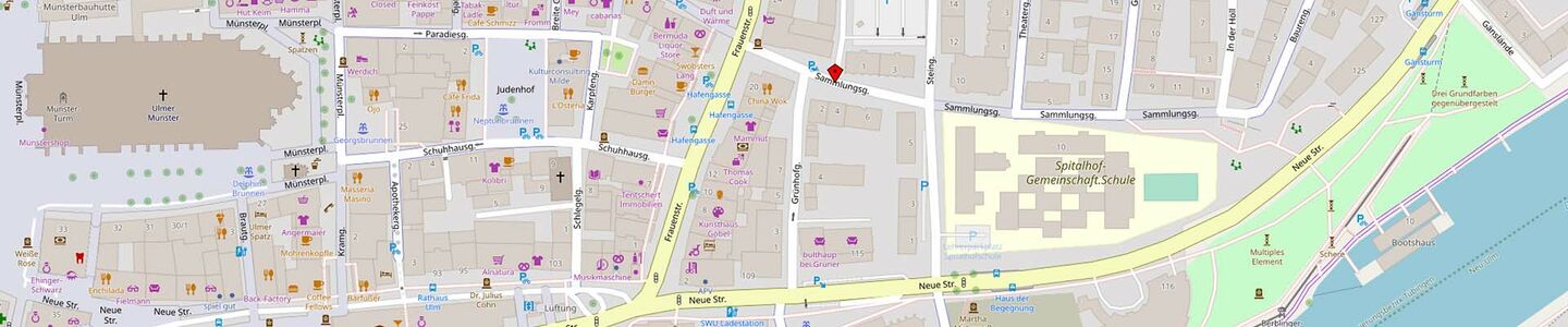 Die Parkplatzsuche in der Ulmer Innenstadt ist etwas schwierig, wir empfehlen Ihnen daher im Parkhaus am Rathaus zu parken. Die Einfahrt befindet sich auf der Neuen Straße. Weitere Informationen zu Parkhäusern finden sie auf www.parken-in-ulm.de