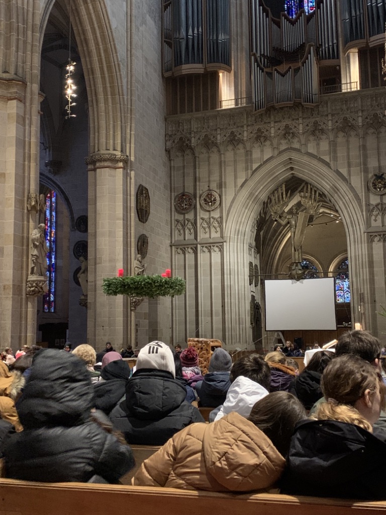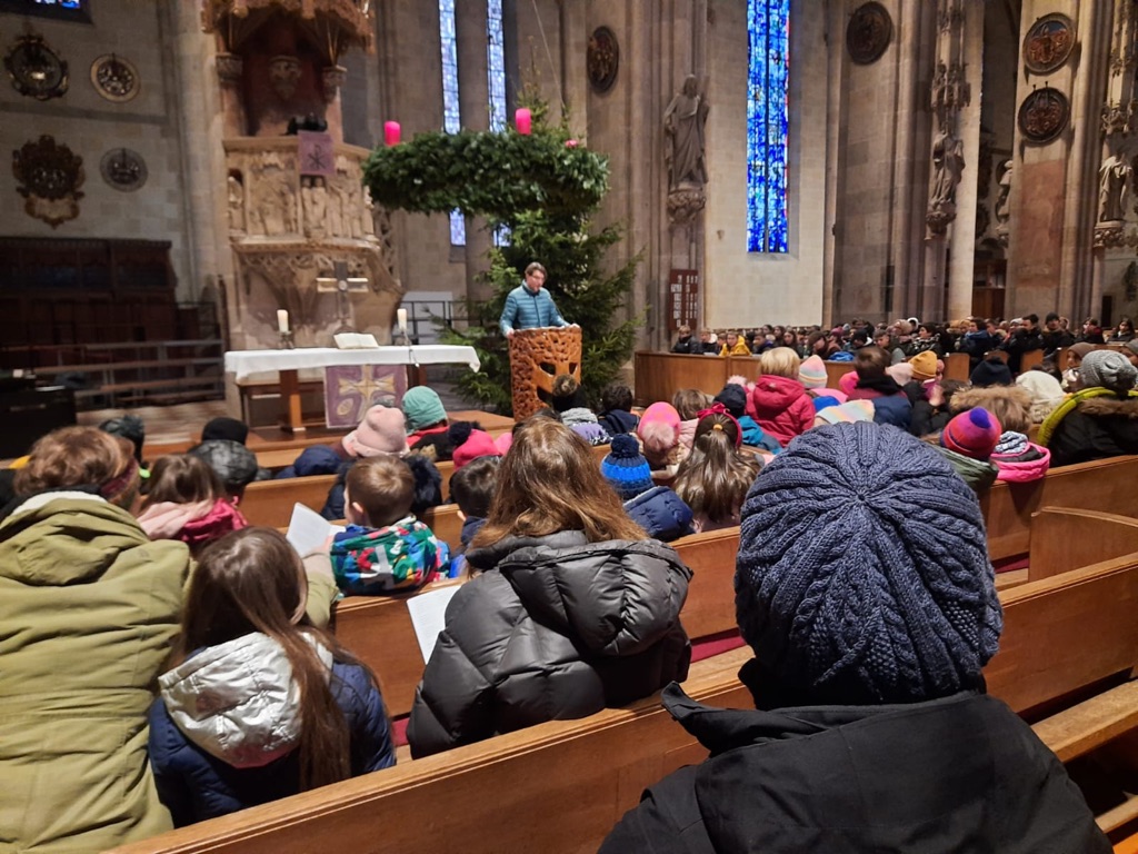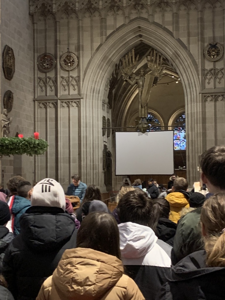 Alle Kinder, Jugendlichen und Erwachsenen waren zum Weihnachtsgottesdienst der Spitalhof Gemeinschaft.Schule ins Ulmer Münster eingeladen. Es wurde die Weihnachtsgeschichte mit Sandmalerei erzählt. Auf diese Weihnachtsbotschaft ging Pfarrer Schaal-Ahlers zum Jahresabschluss noch einmal ein und machte deutlich, dass Jesus in unsere Welt gekommen ist, um mit uns die Liebe Gottes zu teilen, egal welche Fehler wir machen und gemacht haben. Die Kinder hatten Führbitten vorbereitet und vorgelesen und wer wollte konnte in der Gemeinschaft das Vater unser beten. Der Gottesdienst wurde von Paul Nickel musikalisch umrahmt.
