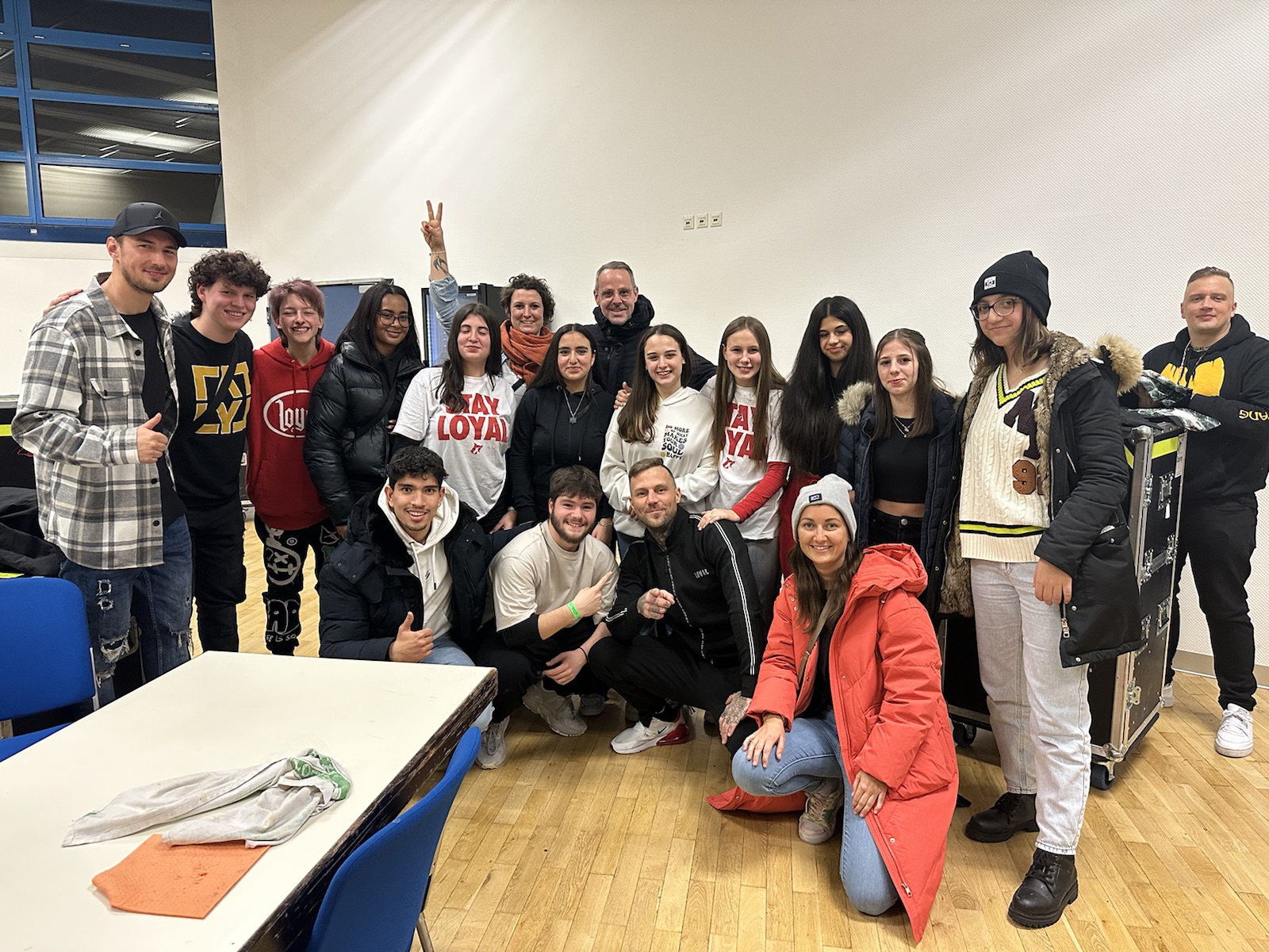 ....einfach MEGA war der Besuch des Kontra K. Konzerts in der Stuttgarter Schleyerhalle am 19.12.2022. Kontra K alias Maximilian Diehn lud uns als seine Patenschule im Rahmen des Netzwerks "Schule ohne Rassismus - Schule mit Courage" zum Konzert "Der Sonne entgegen" ein. Sechzehn Schüler*innen und Begleiter*innen fuhren am Abend mit dem Zug nach Stuttgart und wussten noch nicht was in Stuttgart erwartet. Nach einem musikalisch und emotional grandiosem Konzert erhielt die Gruppe noch Zugang zum Backstagebereich des Künstlers. Dort nahm sich Kontra K und sein Team viel Zeit mit allen zu sprechen und gab der Gruppe viel Motivation mit nach Hause, sich aktiv gegen Rassismus und Diskriminierung einzusetzen und ebenso einen guten, erfolgreichen Schulabschluss zu erwerben.