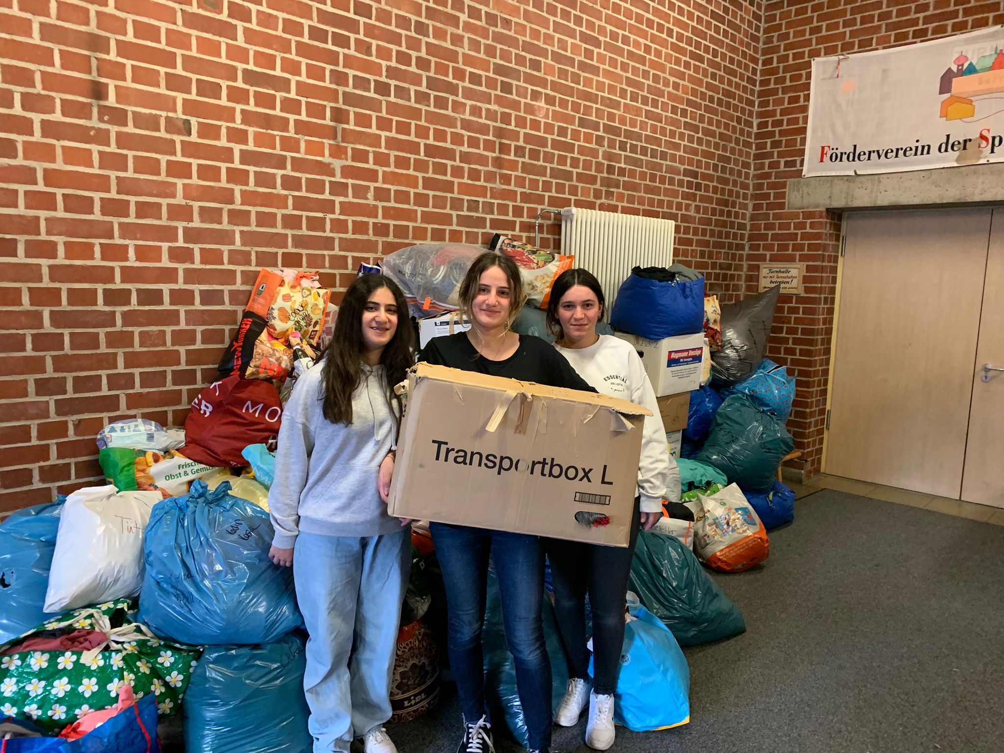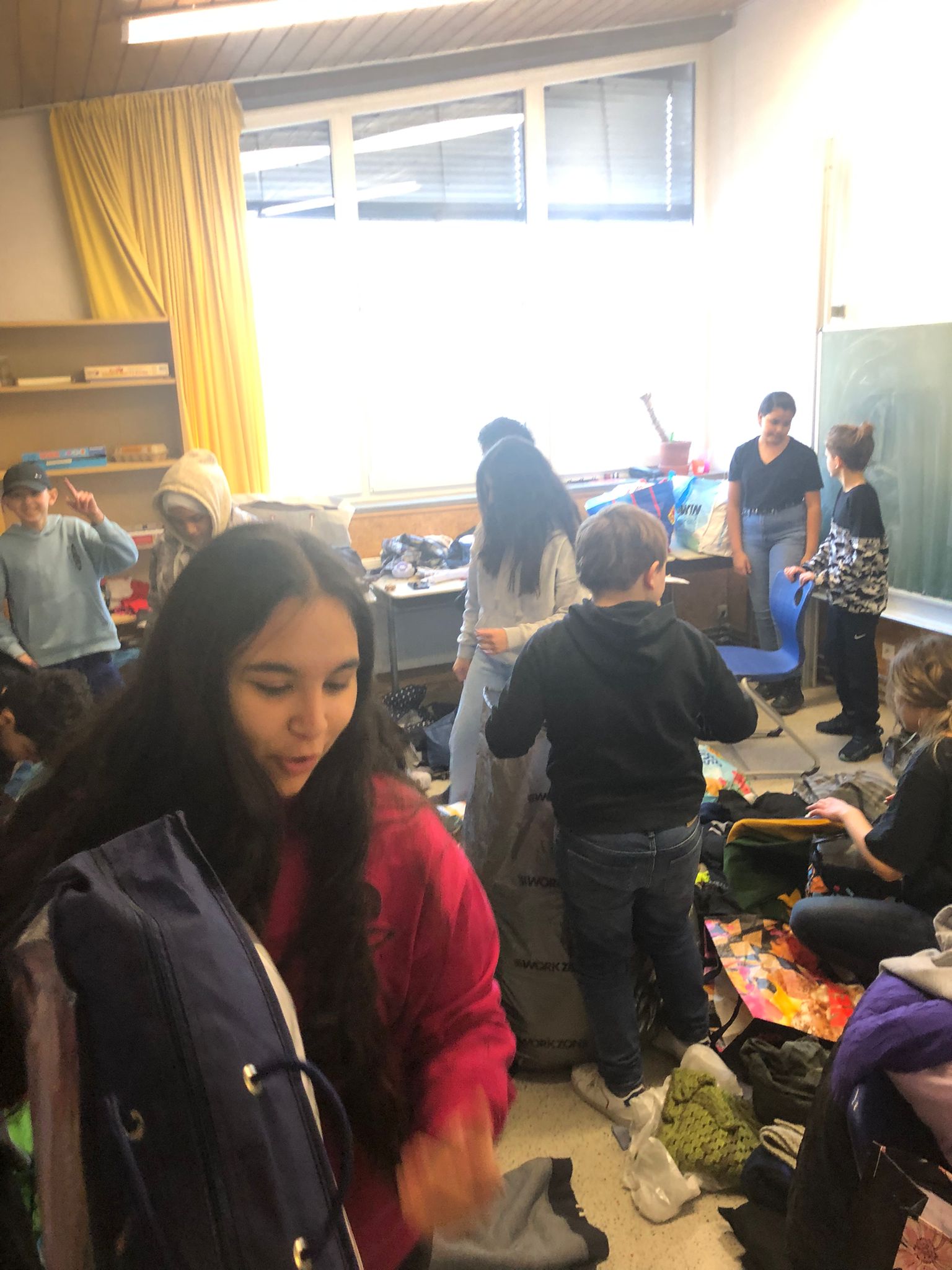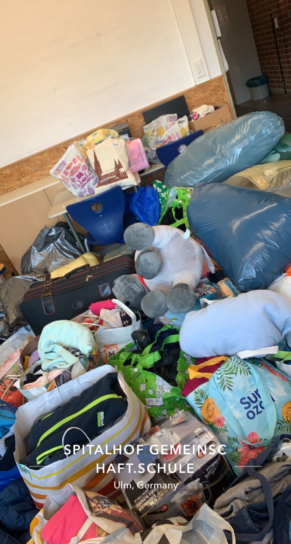 Viele Kinder und Eltern haben auf unseren Spendenaufruf spontan reagiert und waren bereit Kleider, Schuhe, warme Decken, Windeln und Babynahrung. Nachdem unsere eifrigen und sehr motivierten Schüler*innen die Spenden sortiert hatten, wollten wir diese zu den Abgabestellen fahren. Die verschiedenen Ulmer und Neu-Ulmer Abgabestellen hatten bereits so viele Kleiderspenden, dass sie nichts mehr annehmen konnten.
