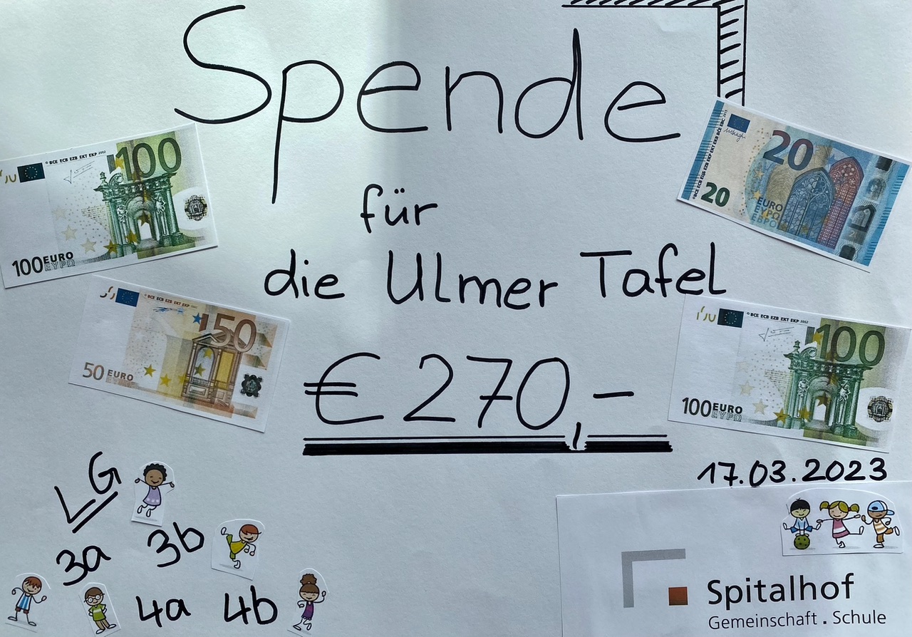 Gemeinsam mit den Schüler*innen der Primarstufe wurde entschieden, dass die gesamte Summe zu 50% an die Erdbebenopfer in Syrien und der Türkei gespendet wurden und zu 50% an Ulmer Bedürftige.