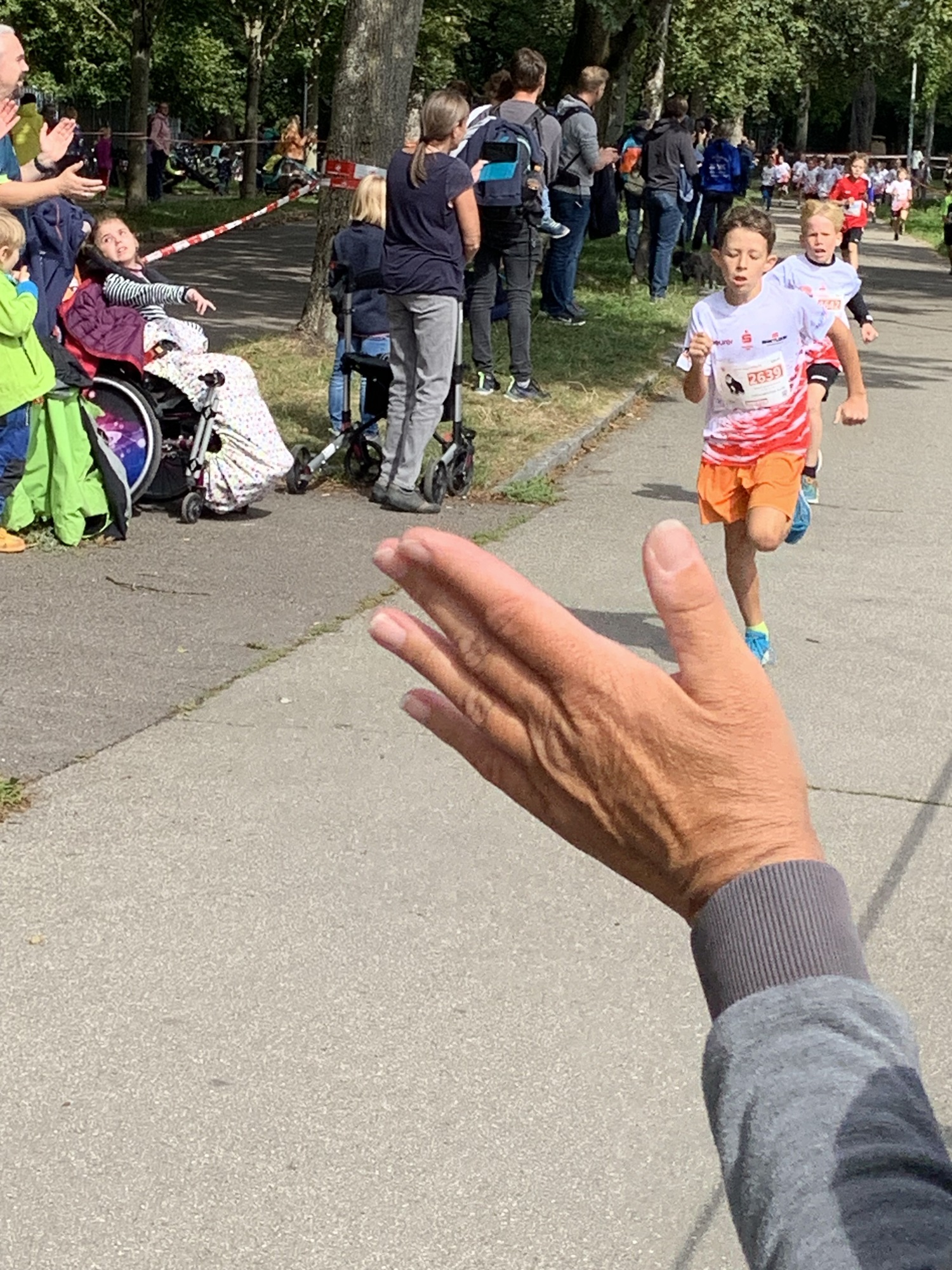 Insgesamt starteten 45 Schüler*innen unserer Primarstufe. Mit großer Motivation und voller Freude nahmen die angemeldeten Schüler*innen in den verschiedenen Altersklassen teil. Besonders spannend war der Zieleinlauf der Jungs des Jahrgangs 2014. Vorne dabei war unser Schüler Vito Steck, der als erste auf die Zielgerade im Donaustadion einlief. Das Zielfoto entschied letztendlich, dass Vito den 2.Platz erreichte.