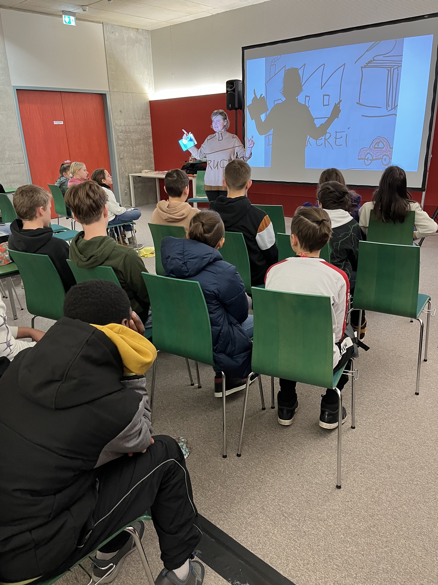 Die Lerngruppe 7a hat am Donnerstag, 7.12.23, die KiBuM (Kinderbuchmesse) in der Stadtbibliothek Ulm besucht und durfte der spannenden Lesung aus dem Jugendbuch „Ins Paradies?“ von der Autorin Iris Lemanczyk lauschen. In der Geschichte geht es um den 13-jährigen Adnan, der die gefährliche Reise im Boot von Tunesien auf die italienische Insel Lampedusa wagt. Dabei erfahren die Leser anschaulich von den Erlebnissen auf der Flucht.