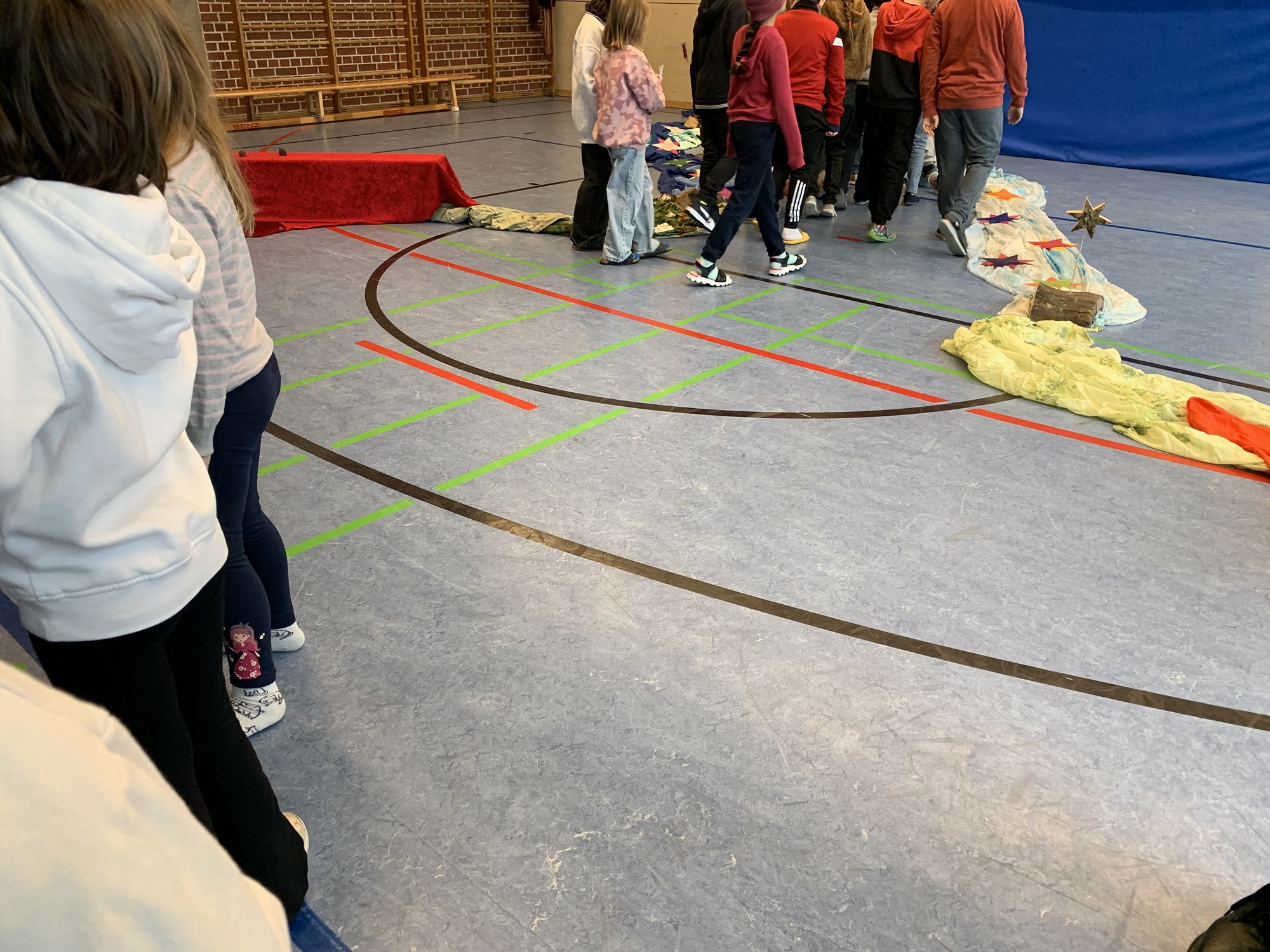 Alle Kinder der LG 1-4 kamen in der geschmückten Turnhalle zusammen und sangen gemeinsam Adventslieder.