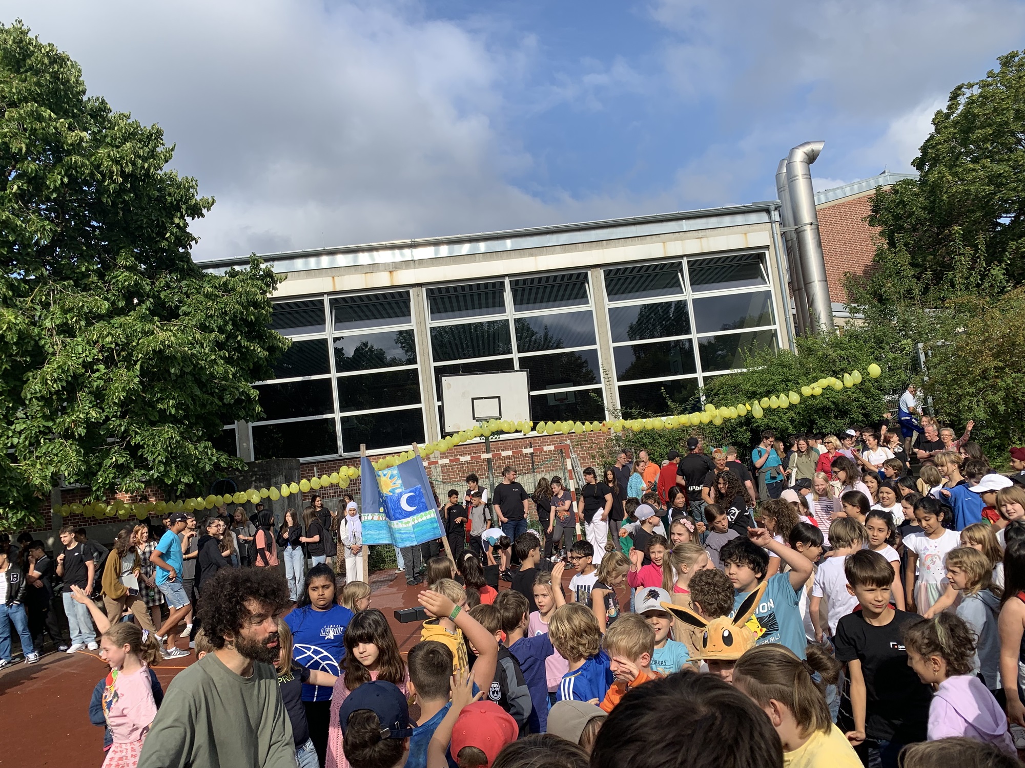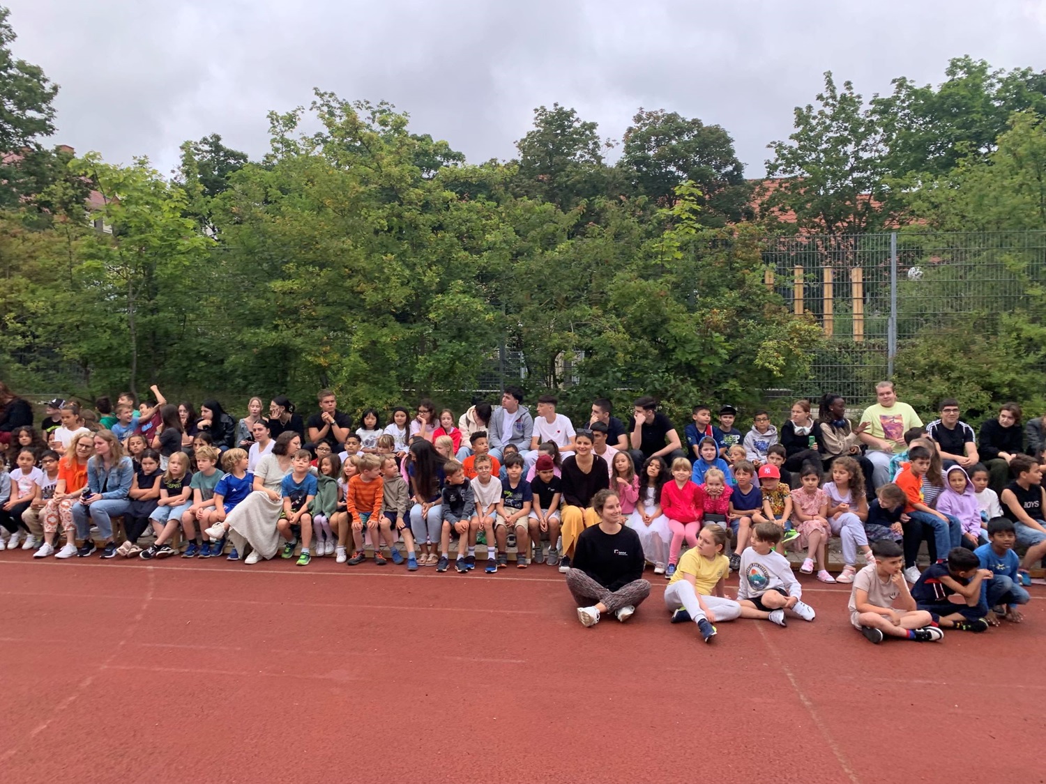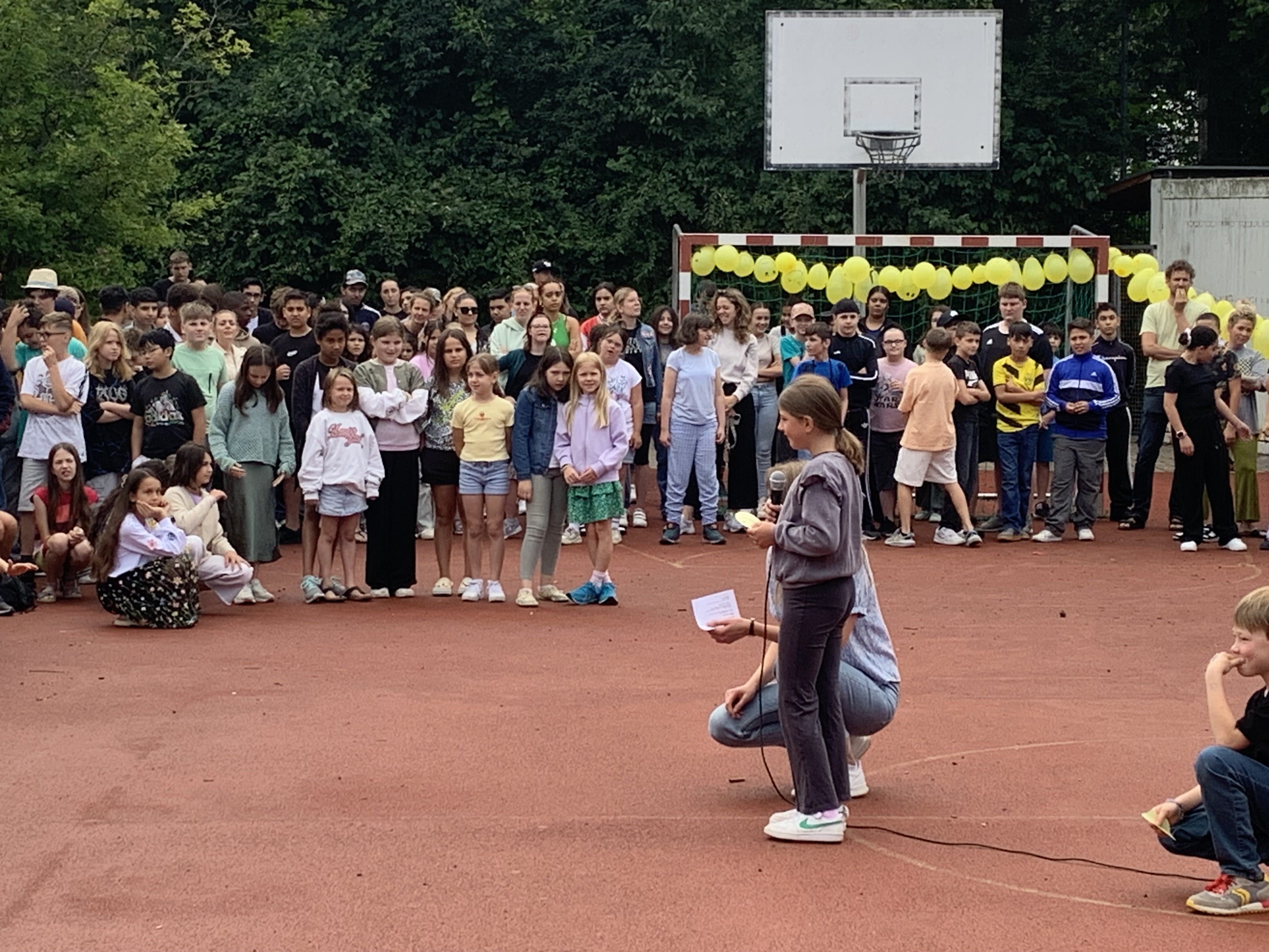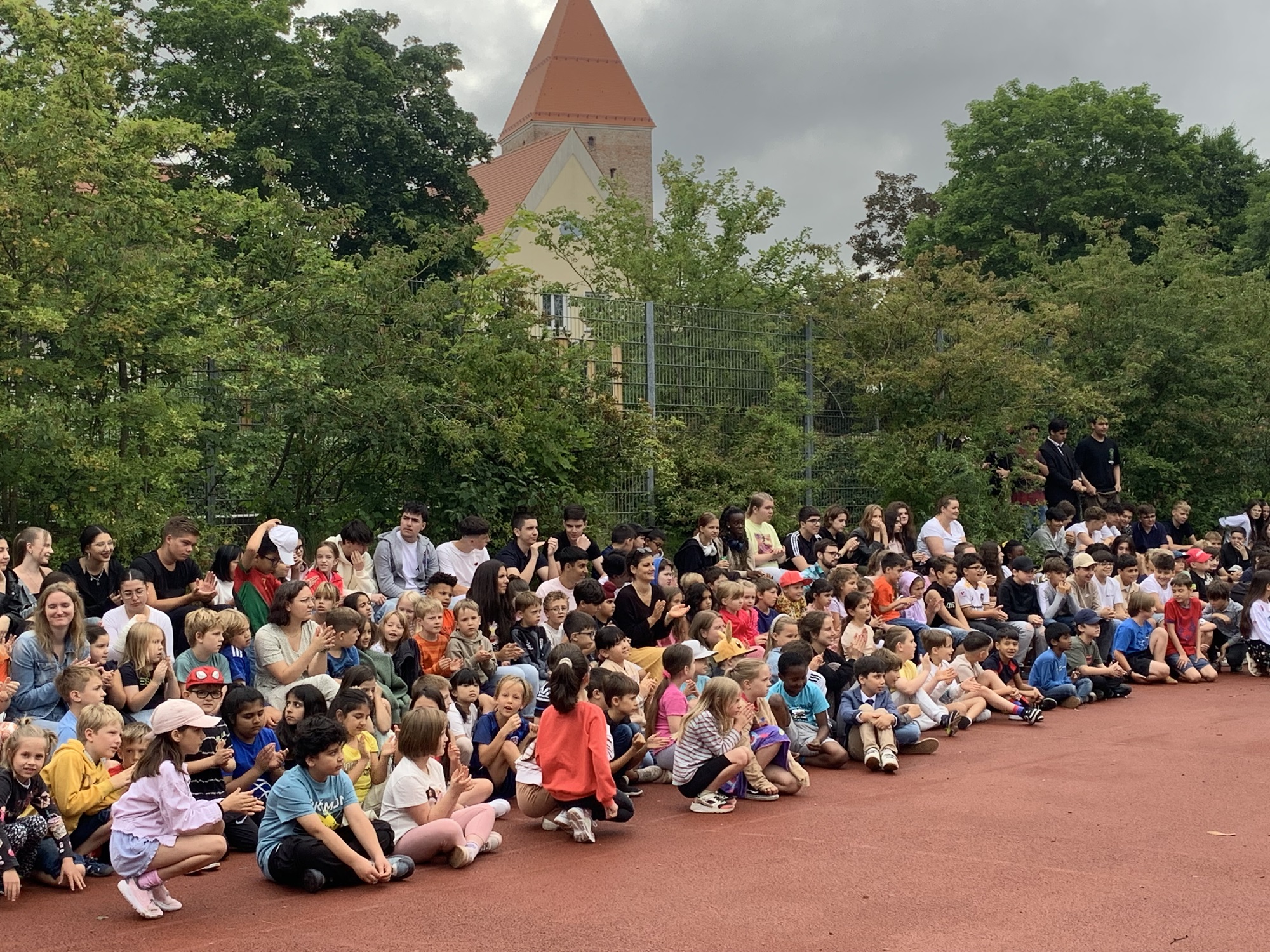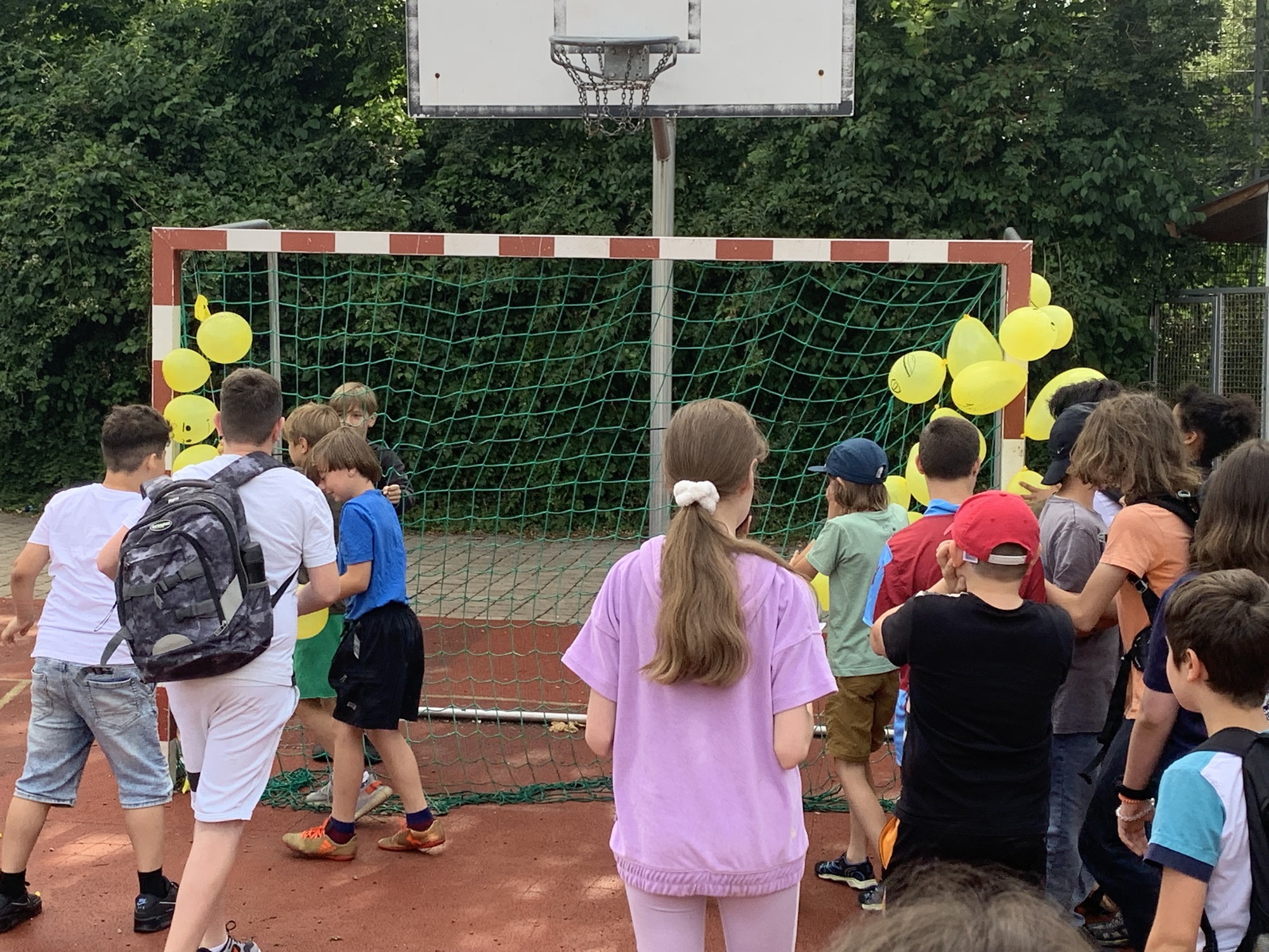 Alle Lerngruppen trafen sich auf dem Hartplatz, um diesen Abschluss gemeinsam gebührend zu feiern.
