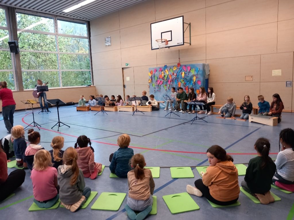 Unter der Leitung von Frau Burow wurden gemeinsam herbstliche Lieder mit instrumentaler Begleitung und auch viel Bewegung gesungen.