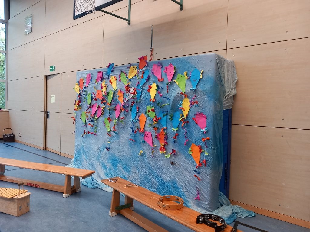 Zur Bunten trafen sich die Schüler*innen in die herbstlich bunt gestalteten Sporthalle.