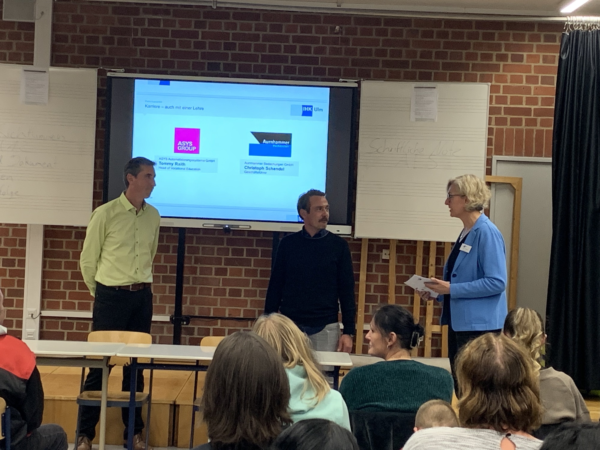 - Podiumsdiskussion mit dem Geschäftsführer der Firma Aurnhammer Herr Schendel und dem Ausbildungsleiter der ASYS Group Tommy Raith.
