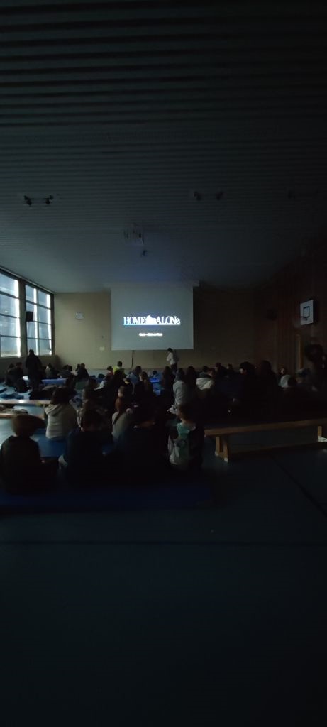 Die Schüler*innen durften sich zum Abschluss einen Weihnachtsfilm auswählen und diesen gemeinsam in der Turnhalle mit leckerem Popcorn anschauen.
