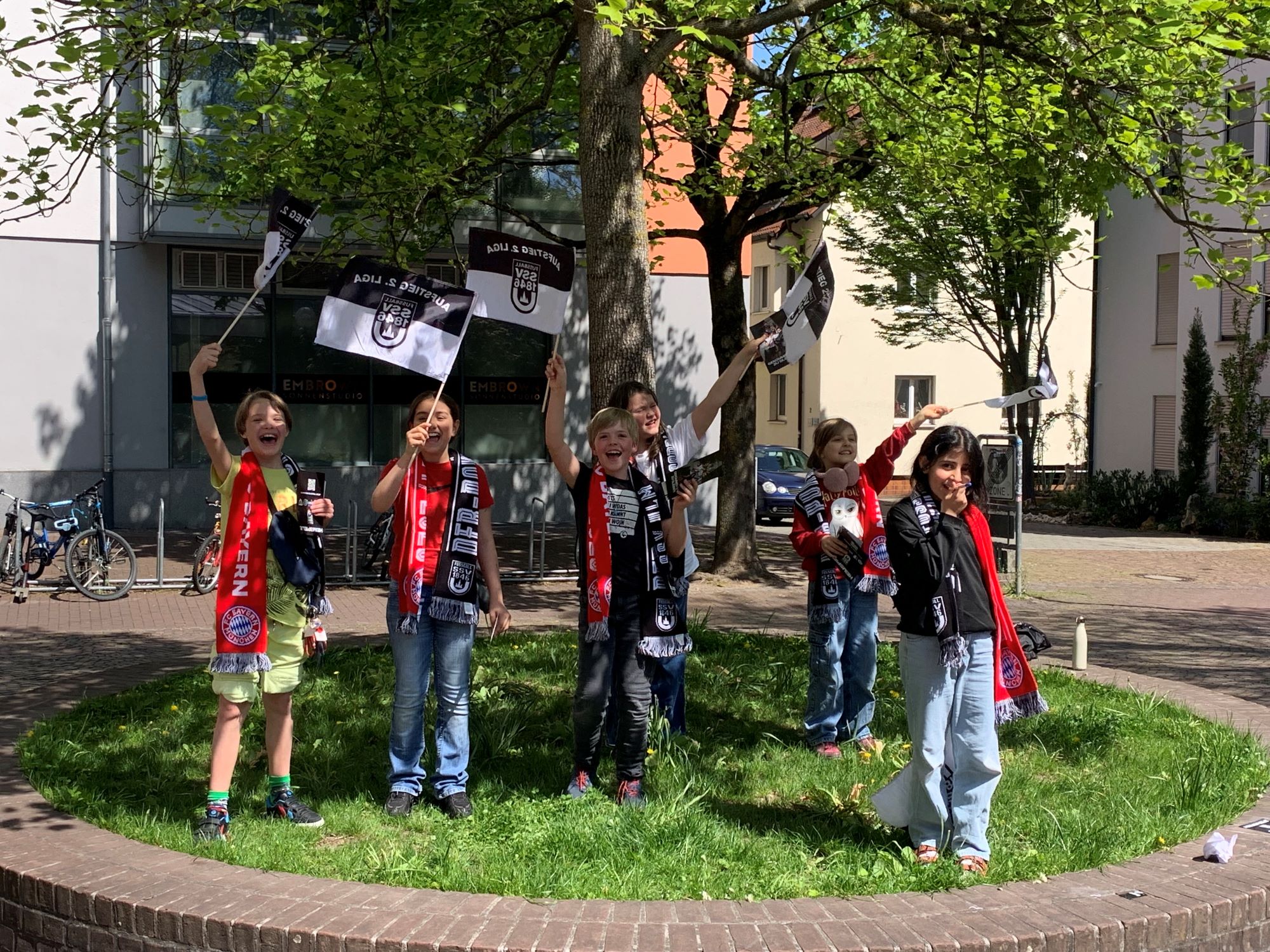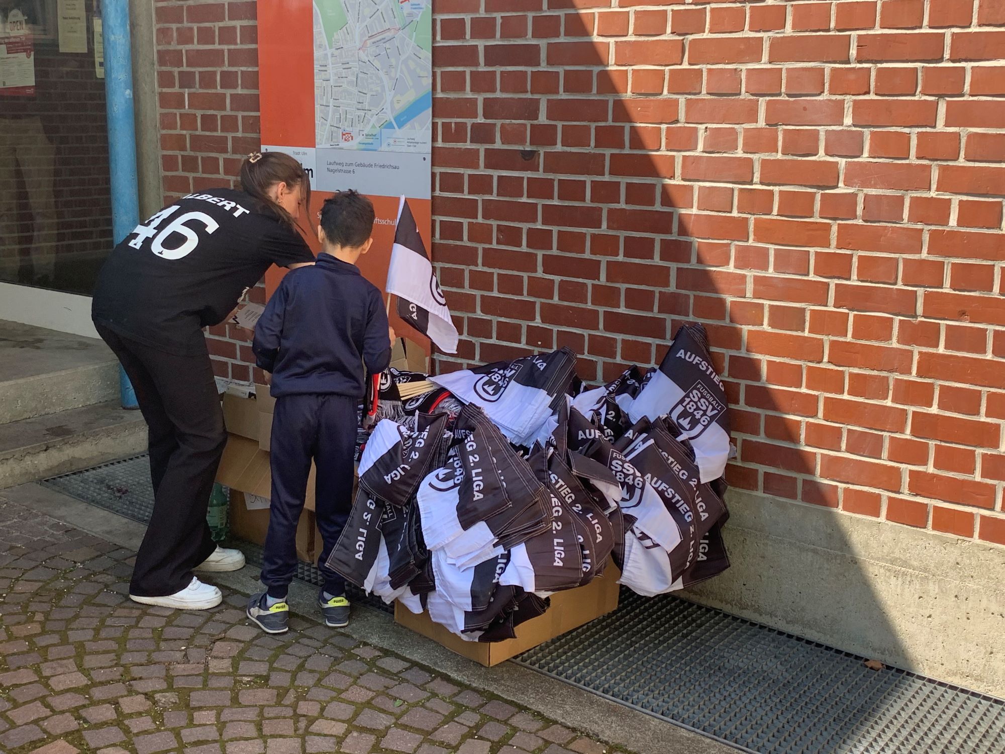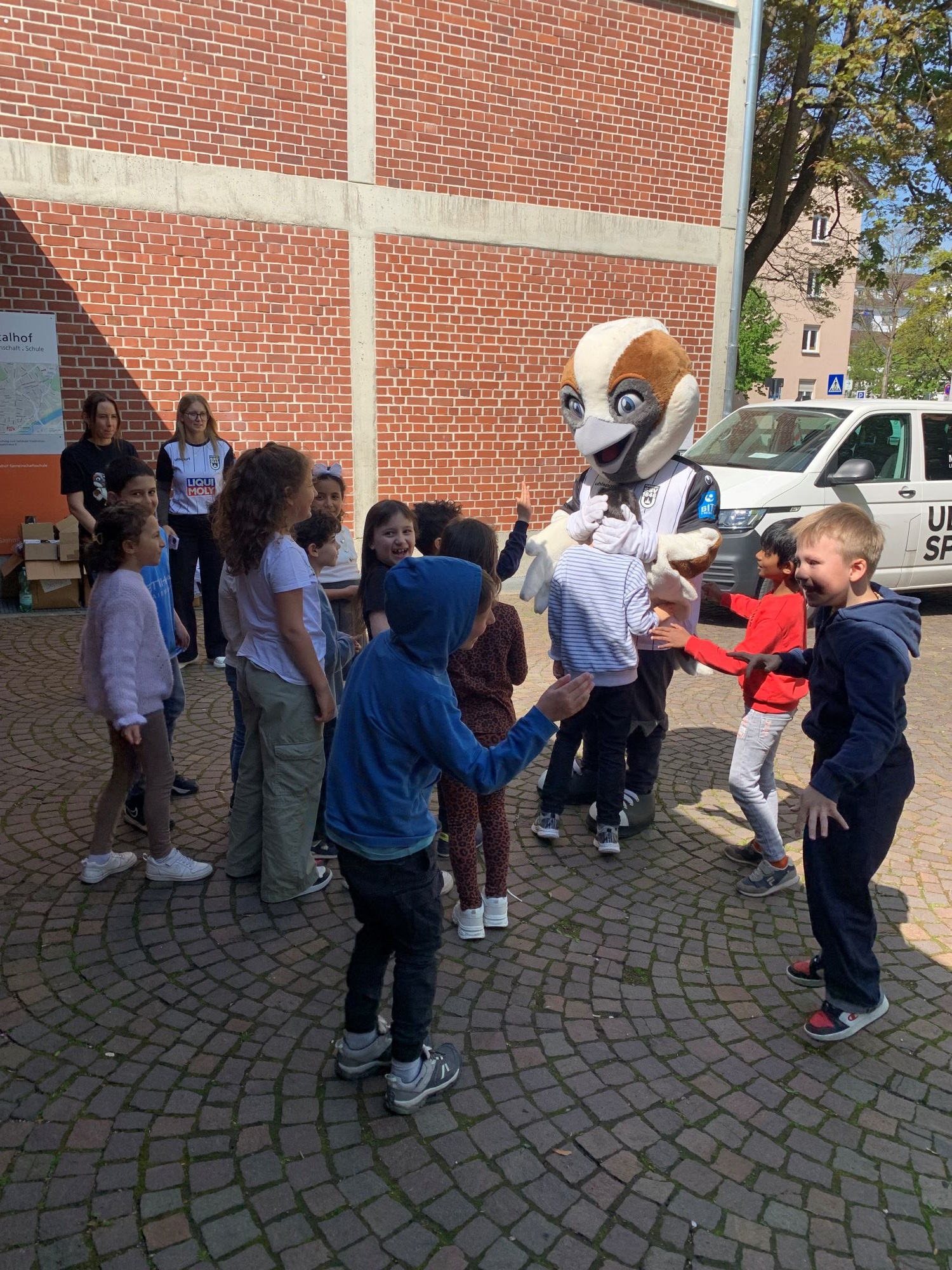 Mit Fahnen, Schals und Autogrammkarten erfreuten sie unsere Schüler*innen und sorgten damit für eine gelungene Abwechslung.