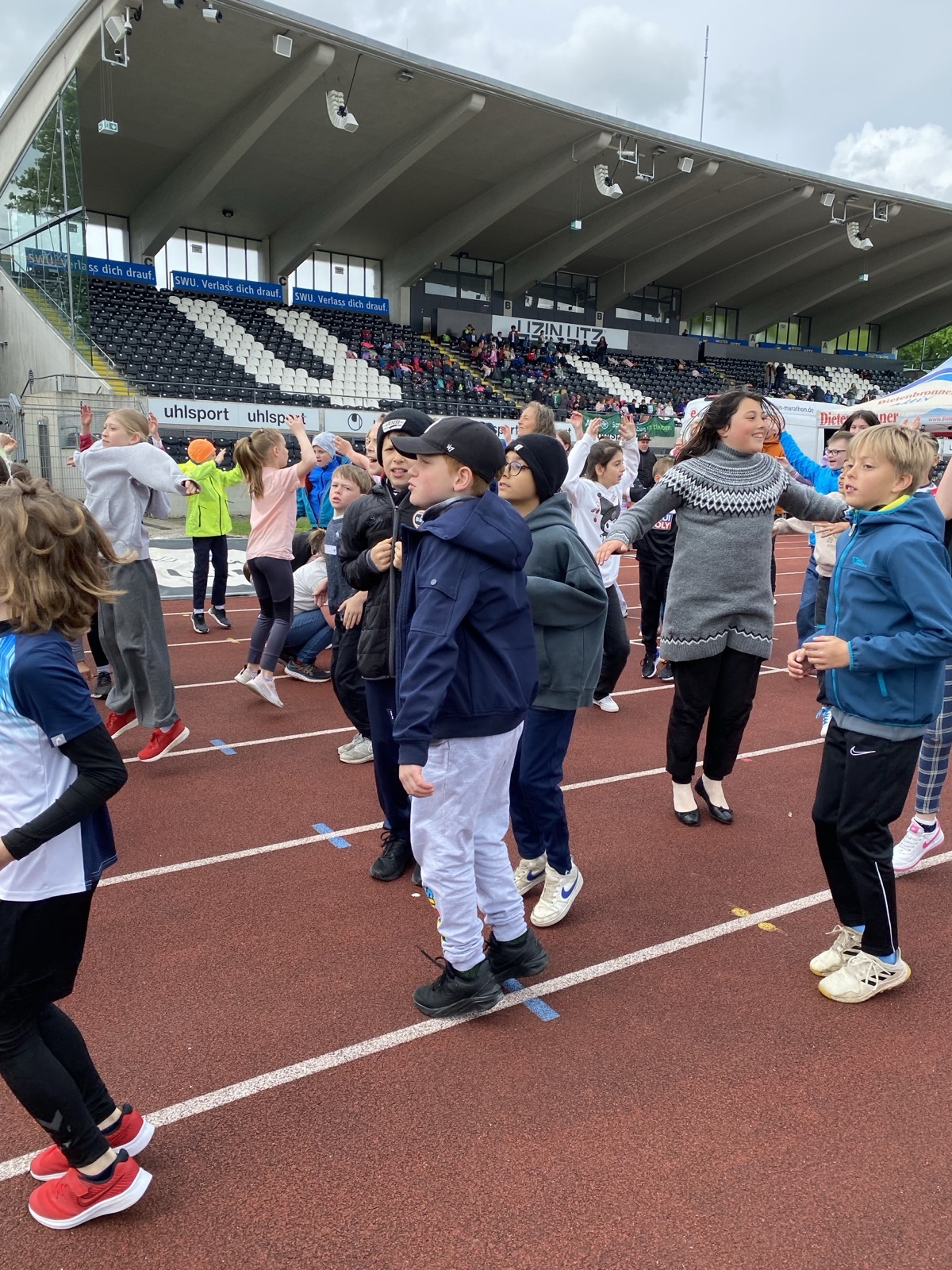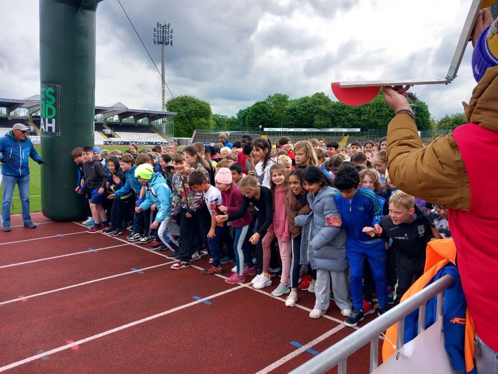 Rund 40 Kinder der Spitalhof Gemeinschaft.Schule nahmen an den AOK-Vorbereitungsläufen für die Einstein-Schülerläufe teil. Gemeinsam mit zahlreichen Schulkindern aus ganz Ulm/Neu-Ulm liefen sie die Originalstrecke ab und bekamen dabei die Gelegenheit, das Donaustadion näher kennenzulernen. Die jungen Läuferinnen und Läufer sammelten dabei wichtige Erfahrungen für den bevorstehenden Wettkampf und zeigten großen Einsatz und Freunde an der Bewegung.